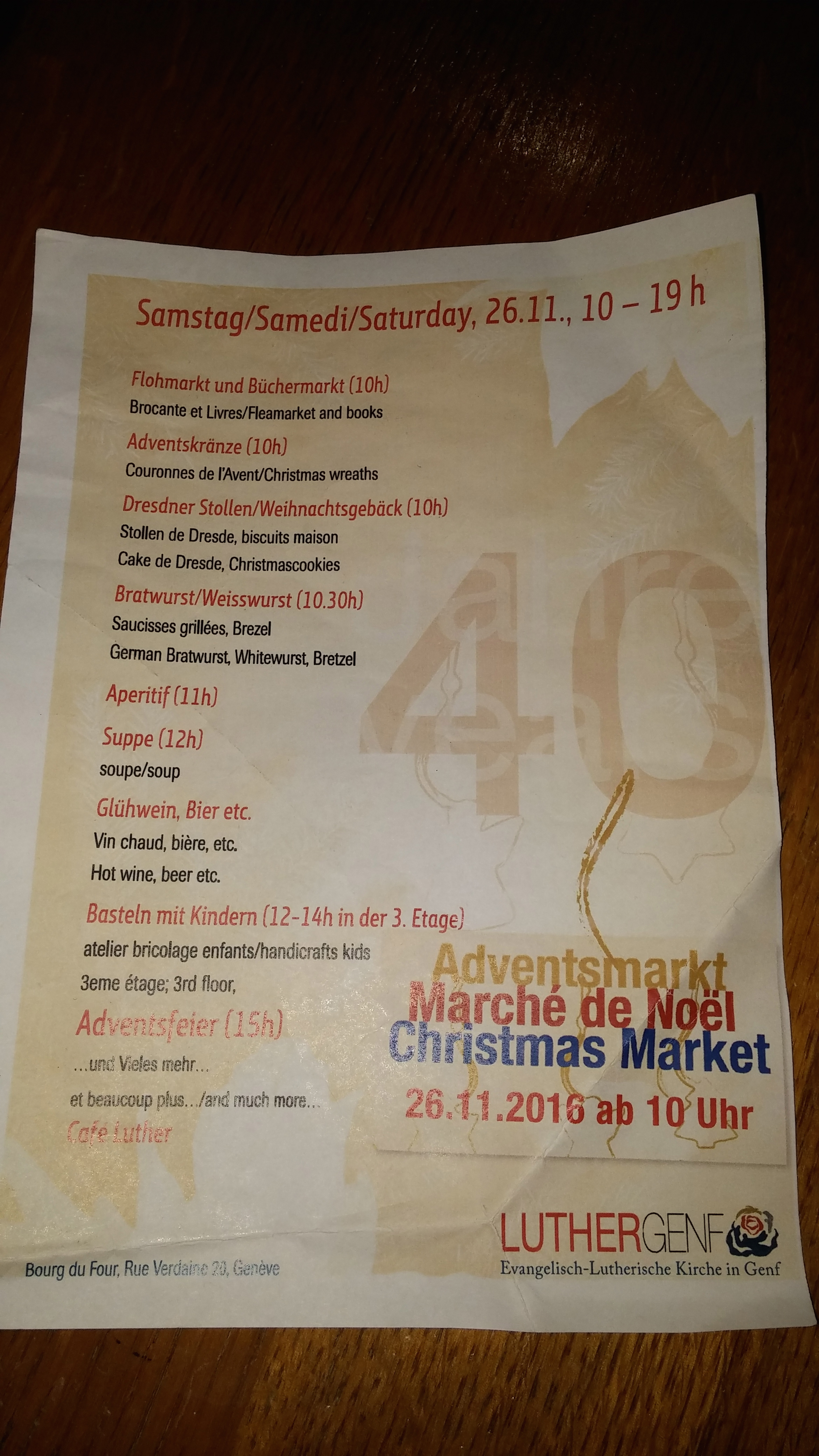 FYI there are not only beautiful wreaths and food goodies at our church advent market today (see flyer) but exceptionally also lots of Spanish and English books in the basement.